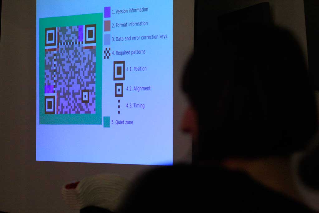 – predstavitev projekta skozi predavanje Tomaža Grušovnika, ki bo predstavilo osnovne značilnosti qr kod in njihovega umetniškega potenciala