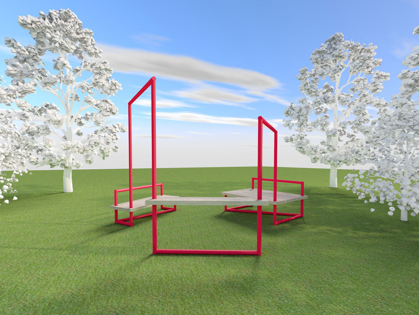 withstand long-term weather and daily use. The metal structure consists of standardised metal pipes, easily replaceable and reparable in case of wear or updated design. Horizontal wooden elements, designed for